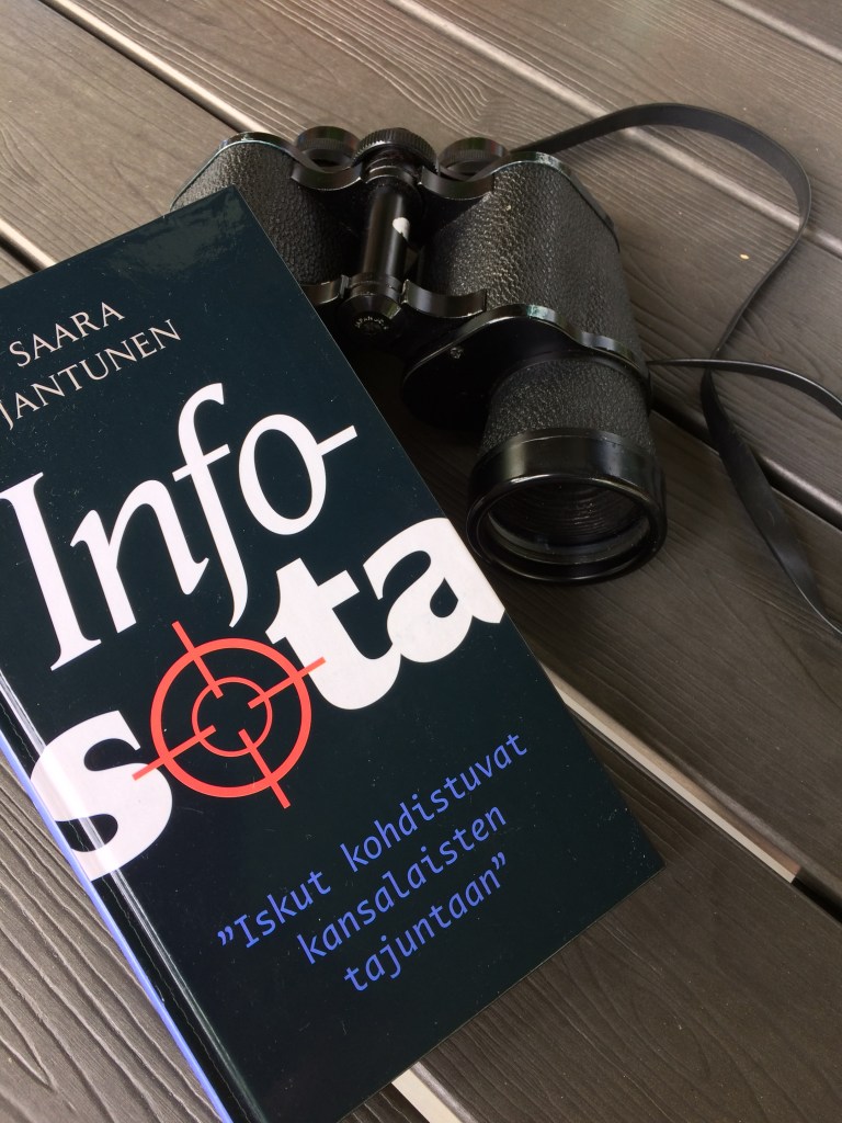 Tietokirjahaasteen toiseksi osaksi valikoitui kirjahyllystäni Saara Jantusen teos, joka on odottanut lukemista jo jonkinmoisen tovin. Kirjoittaja on sotatieteiden tohtori ja tutkija puolustusvoimissa. Teos ei ole akateeminen tutkimus, eikä se pohjaudu Jantusen USA:n strategista kommunikaatiota käsittelevään väitöskirjaan. Sen sijaan Infosota esittelee strategista informaatiovaikuttamista, jota valtiot käyttävät omien etujensa ajamiseksi.