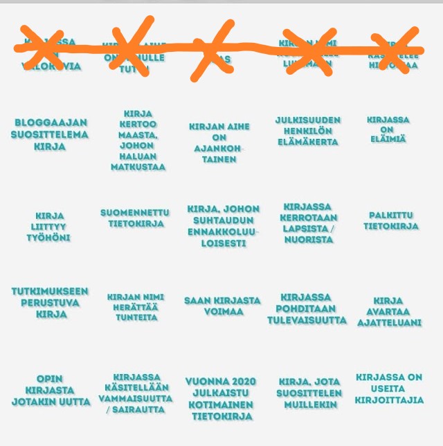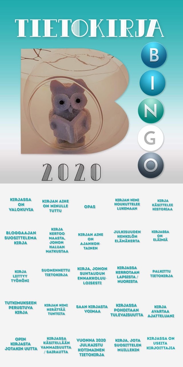 On aika tarkastella, miten bingoilussa kävi. Kirjat kertovat -blogin haasteessa piti lukea tietokirjoja. Haasteen mukaisesti luin viisi teosta. Poikkeuksellisen vuoden kunniaksi valitsin sananvapauteen liittyviä teoksia. Kuten tiedetään, sananvapauteen liittyy oikeus julkaista ja kertoa mielipiteensä sekä yhtäläinen oikeus vapaasti valita, kenen tekstejä lukee.