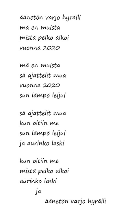 Sananvapaus ei juurikaan kiinnostanu, paitsi mua. Kyttiä ei näkyny, vaikka niitä venailtiin, ja fiilikset nyt oli, mitä oli. Turhan paljon tuli ruumiita. Kirjoja jäi myös liikaa pöydille. Semmosta jälkee sai aikaan se 2020.
