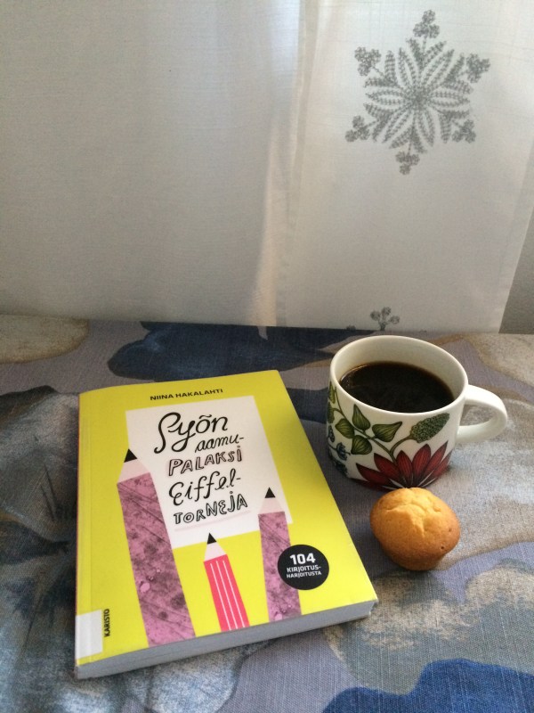 Niina Hakalahti 2018. Syön aamupalaksi Eiffel-torneja: 104 kirjoitusharjoitusta. Karisto, Hämeenlinna. 137 s. Viisikymppistä Niina Hakalahtea voi kuvata kirjailijaksi, kirjoittamisen opettajaksi ja oppimateriaalien laatijaksi. Hänen oma kaunokirjallinen tuotantonsa kattaa niin runoja kuin romaaneja lapsille ja aikuisille. Tietokirjailijana hän tehnyt yksin tai yhdessä luovan kirjoittamisen oppaita ja myös kirjoittanut artikkeleita. Itse olen aiemmin käyttänyt Kirjoittajaohjaajan tukipakettia (1997), jonka Hakalahti... Continue Reading →
