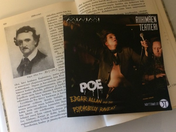 Näyttämö 3T, Poe! - Edgar Allan & Psychobilly Ravens. Kantaesitys. Riihimäen teatteri 21.3.2019. Esityksen kesto 1 tunti 15 min. - K13 - Hämeen poliisipiirin alueelle osui kolmaskin kauhua pursuva, väljästi rikollinen näytelmä Poe. Käsikirjoitus on Näyttämö 3T:n käsialaa. Tekijäkollektiivin taustalla ovat säveltäjä Iiro Ollila, ohjaaja Samuli Reunanen ja koreografi Liisa Risu. Näytelmän ovat tuottaneet Tanssiteatteri... Continue Reading →